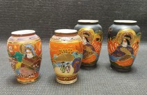 porcelana japonesa decorada cpm motivos orientais como o dragão e as nuvesn sobre fundo castanho, sinais de uso e de falta de dourado; Dim.- 20 cm (maior).
