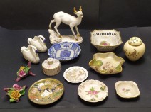 porcelana inglesa com decorações florais diversas, policromadas e com friso dourado, séc. XX, marcadas, pequenos defeitos; Dim. - 8 cm (a maior).