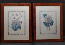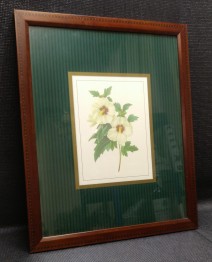 pintura a aguarela e tinta da China, assinado, passpartout em tecido lavrado, moldura a imitar bamboo, sinais de uso; Dim.- 34,5 x 22,5 cm (mancha).