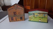 Caixa em alumínio de bolachas e biscoitos «Aliança» com diferentes caixas e crachás vintage; Dim.- 22,5 x 11,5 c.