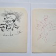 duas técnicas mistas sobre papel, assinadas e datadas, pequenos defeitos. Dim. - 20 x 15 cm