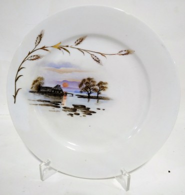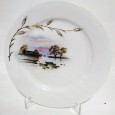 porcelana da Fábrica da Vista Alegre, decoração policromada e dourada "Paisagem oriental", séc. XX, esbeiçadelas. Dim. - 21 cm