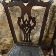madeira, decoração entalhada, tampo em couro com pregaria, séc. XX, sinais de uso, vestígio de insectos xilófagos. Dim. - 98 x 40 x 50 cm