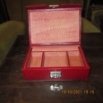 Caixa porta jóias em madeira forrada a pele encarnada com