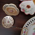 porcelana, decoração policromada e dourada, séc. XX, sinais de uso, um partido e colado. Dim. - 30 cm (maior)