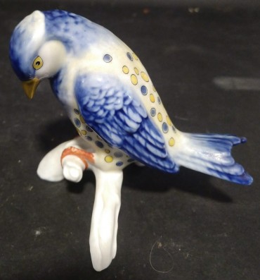 escultura da Fábrica da Vista Alegre, decoração policromada e dourada, séc. XX, pequeno defeitos. Dim. - 10 cm