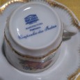 porcelana, decoração policromada e dourada "Flores", marcado NEOCLASSICA MANUFACTURA PORTUGAL modelo Companhia das Indias, séc. XX, pequenos defeitos. Dim. - 24 cm (cafeteira)