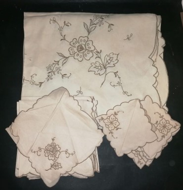 Toalha e doze guardanapos e seis guardanapos de pequenas dimensões