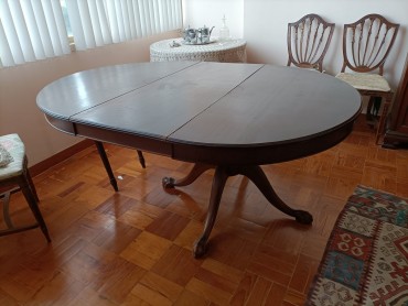 madeira, séc. XX, com uma tábua de extensão, sinais de uso. Dim. - 130 x 170 cm