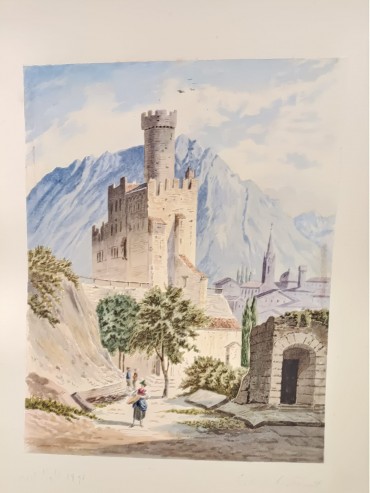 aguarela sobre papel, assinada e datada de 1893, manchas de humidade. Dim. - 30 x 24 cm