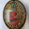 tecido e bordado, séc. XX, sinais de uso. Dim. - 6.5 x 5 cm