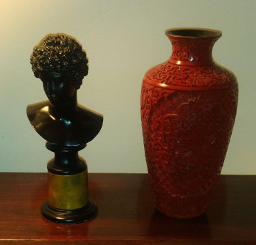 metal cloisoné, e massa policromada, séc. XX, pequenos defeitos. Dim. - 20 cm (o maior)