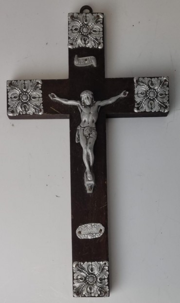 madeira, aplicações em metal, séc. XX, sinais de uso. Dim. - 27 x 15 cm