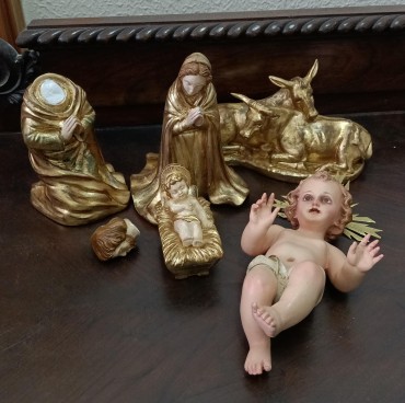 cerâmica e massa, decoração policromada, séc. XX, faltas e defeitos. Dim. - 25 cm (maior)
