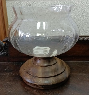 vidro com base em madeira, séc. XX, faltas no bordo. Dim. - 29 x 27 cm