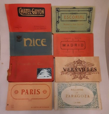 Contém mais de 160 postais de Vários temas e locais como Zaragoza, Paris, Nice, Madrid Escorial, Capri, Versailles.