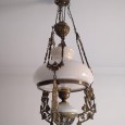 estrutura em metal, abajours em vidro, séc. XX, sinais de uso. Dim. - 105 cm