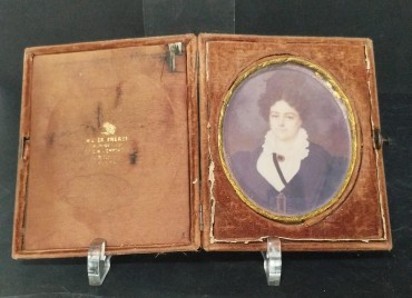 fotografia a negro, moldura em metal amarelo, estojo original, séc. XX, pequenas faltas e defeitos. Dim. - 9.5 x 8 cm