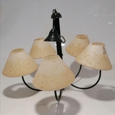 ferro forjado monocromo, abat-jours em tecido e papel, séc. XX, pequenos defeitos, abat-jours com defeito.