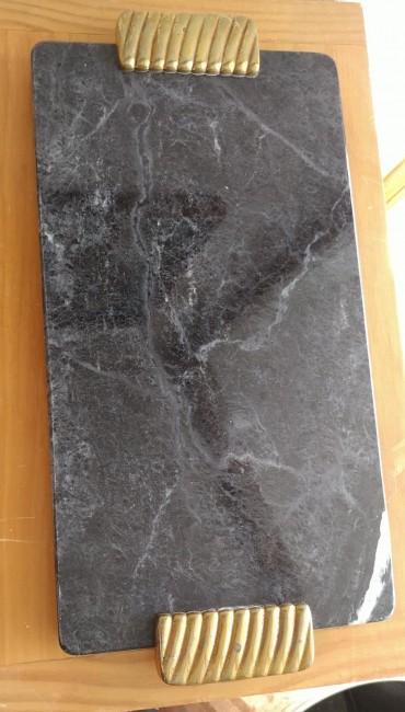 mármore com aplicações em bronze, séc. XX, pequenos defeitos. Dim. - 22 x 44 cm