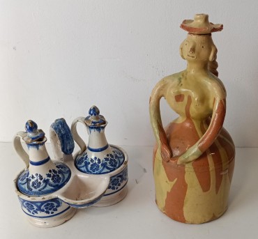 cerâmica e barro, decoração policromada, séc. XX, faltas e defeitos. Dim. - 30 cm (maior)