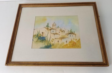 técnica mista sobre papel, séc. XX, sinais de uso. Dim. - 16x19 cm