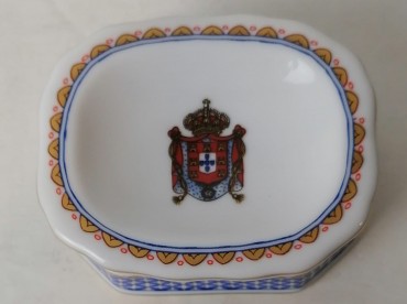 porcelana, decoração policromada e dourada, séc. XX, sinais de uso. Dim. - 8x7x4 cm