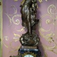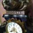 francês, autonomia de 8 dias, toca horas e meias horas em campanhia, regulação da marcha no mostrador, marcado ROLSEN PARIS e marca de mecanismo E. VARON, escultura em antimónio assinada VIRGILE MOREY (act. 1883-1895), pequenos defeitos. Dim. - 83 cm (total) ; Dim. - 60 cm (escultura)