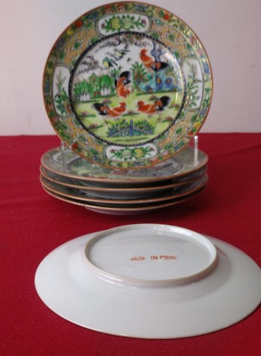 porcelana da China, decoração policromada e dourada "galos", séc. XX, sinais de uso. Dim. - 18 cm