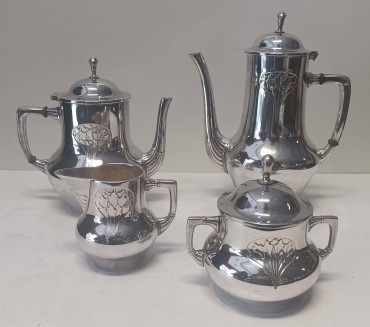 metal, decoração relevada "Arte Nova", séc. XX, marcado KAISER, pequenas faltas e defeitos, uma tampa solta. Dim. - 25 cm (maior)