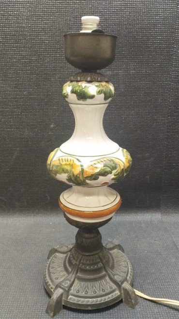 metal, faiança e vidro, séc. XX, pequenas faltas e defeitos. Dim. - 37 cm