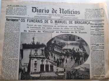 Jornal Diário de Noticias de 1932 (bom estado de conservação) sobre a os funerais de D. Manuel de Bragança.