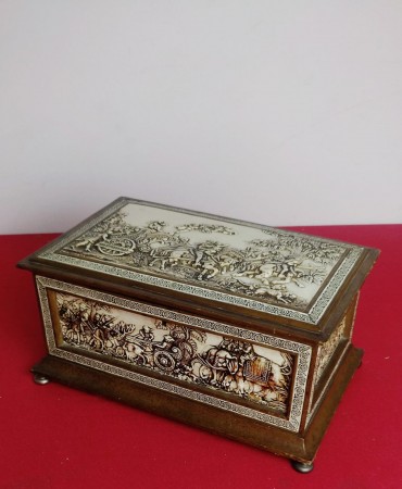 estrutura em material sintético, interior em seda, séc. XX, pequenos defeitos. Dim. - 14 x 28 x 17 cm
