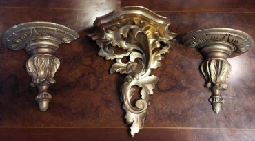 madeira entalhada e dourada e gesso, séc. XX, pequenos defeitos. Dim. - 26 cm (a maior)