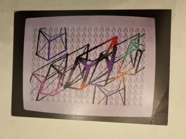 Infografismo Vibrações digitais dum procubo perante os seus espectadores – Fase C.9 1988, convite/postal