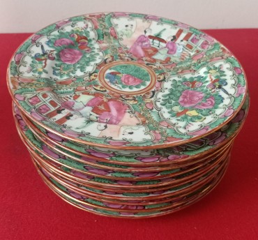 porcelana da China, decoração policromada e dourada, séc. XX, sinais de uso. Dim. - 18 cm