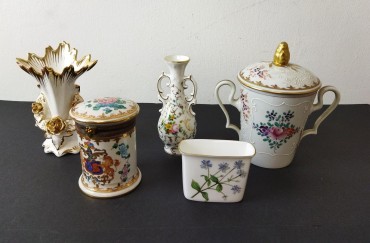 porcelana, decoração policromada, séc. XX, uma marcada Vista Alegre, pequenas faltas e defeitos. Dim. - 11 cm