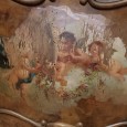 madeira, decoração entalhada, laterais e porta em vidro, fundos abaulados e pintados com figuras aladas e grinaldas, séc. XX. vestígios de insectos xilófagos, pequenas faltas e defeitos. Dim. - 180x60x40 cm