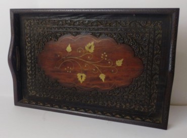 madeira exótica rendilhada com aplicações de embutidos, séc. XX, pequenos defeitos. Dim. - 38 x 25 cm