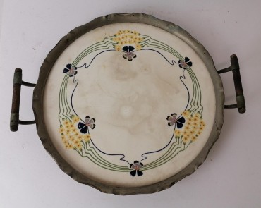 metal, madeira e maiólica, séc. XX, faltas e defeitos. Dim. - 36 cm