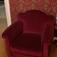 estrutura em madeira, estofado em veludo, séc. XX, sinais de uso. Dim. - 80 x 80 x 80 cm