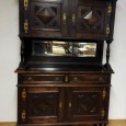 mogno com aplicações em metal amarelo, corpo superior e inferior com prateleiras, séc. XX, pequenos defeitos. Dim. - 196 x 150 x 56 cm