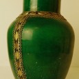 cerâmica vidrada com aplicação em metal amarelo, séc. XX, pequenos defeitos. Dim. - 27 cm