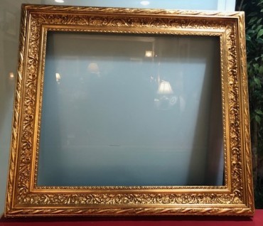 madeira revestida a folha de ouro, séc. XX, pequenos defeitos. Dim. - 61 x 71 cm (medidas interiores) 79 x 89 cm (medidas exteriores)
