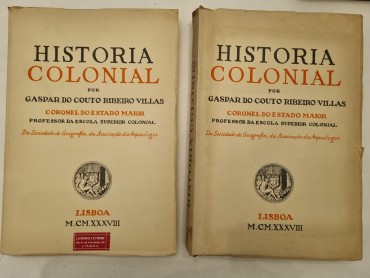 Gaspar do Couto Ribeiro-Villas, coronel, professor da Escola Superior Colonial. Da Sociedade de Geografia, da Associação dos Arqueologos. Grandes ateliers Gráficos «Minerva» de Gaspar Pinto de Sousa & irmão. Vila Nova de Famalicão. MCMXXXVIII [1938]. 2 volumes de 23x16 cm. Com 308; 428 págs. B