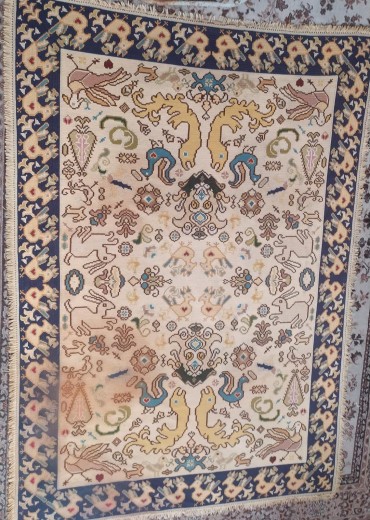 fio de lã, séc. XX, faltas e defeitos. Dim. - 159 x 225 cm