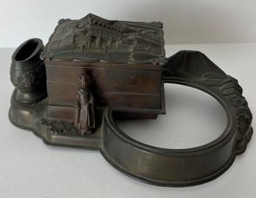 antigo com caixa de música (corda presa), pequenos defeitos, antimônio. Dim. - 20 cm
