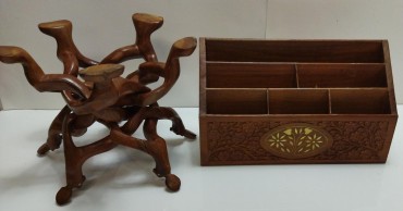 madeira exótica torneada e outra diversa com embutidos e separados para diversos bens, séc. XX, pequenos defeitos. Dim. - 30 x 18 cm (a maior)