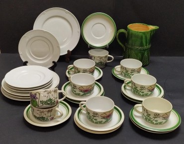 decoração policromada, jarro com relevos, marcados SPAL, séc. XX, pequenos defeitos. Dim. - 20 cm (prato)