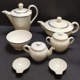 faiança da Fábrica da Vista Alegre, decoração monocroma a branco com friso dourado e azul, marcados, séc. XX, pequenos defeitos. Dim. - 25 cm (o maior)